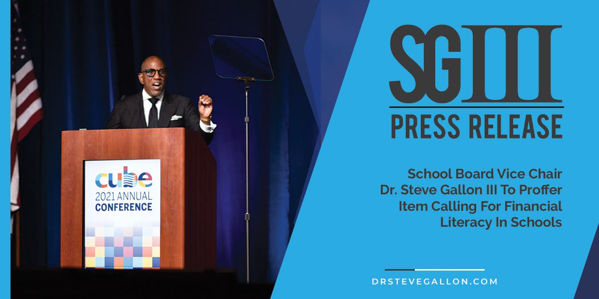 At the School Board meeting of October 20, 2021, School Board Vice Chair Dr. Steve Gallon III will propose agenda item H-14 calling for financial literacy in schools.
