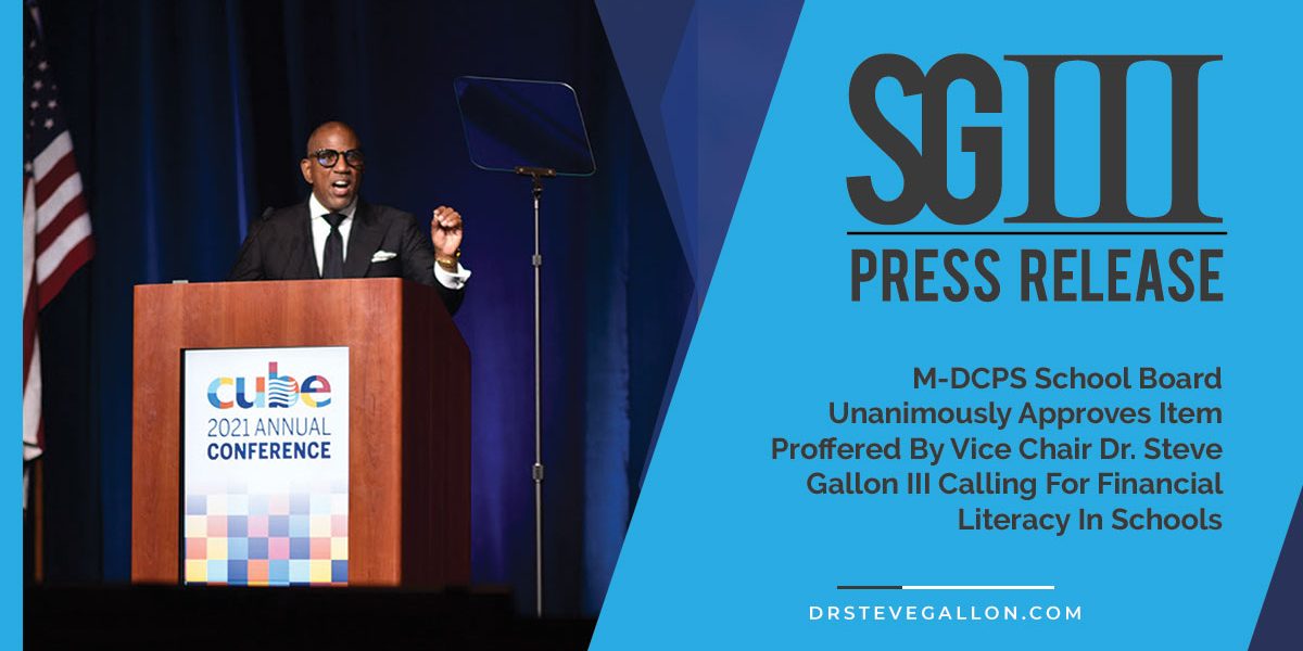 At the School Board meeting of October 20, 2021, the Miami-Dade County Public School Board unanimously approved and co-sponsored agenda item H-14 proffered by School Board Vice Chair Dr. Steve Gallon III calling for financial literacy in schools.
